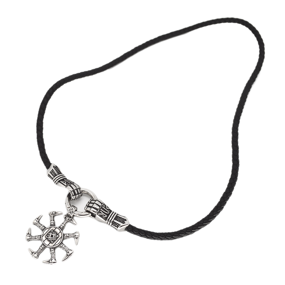 Black PU Braided Leather Cord Necklace with Fist for Men