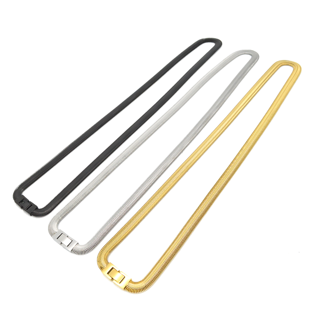 Wholesale 9mm Gold Flat Snake Chain Necklace Stainless Steel