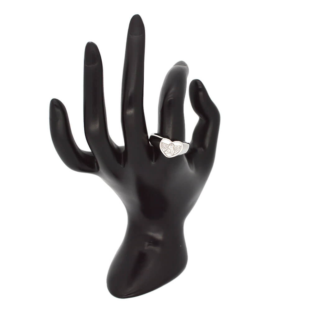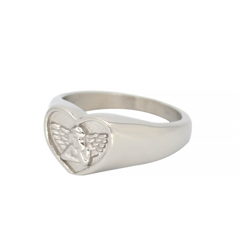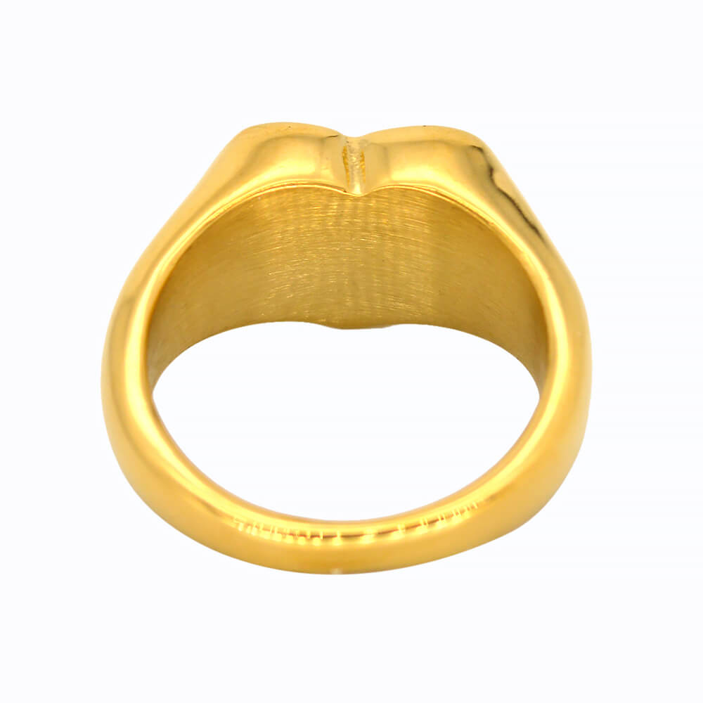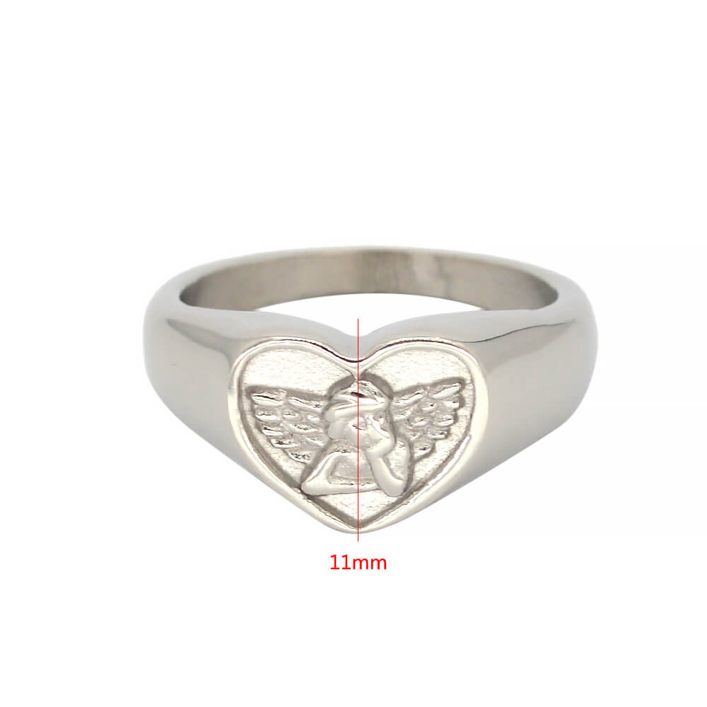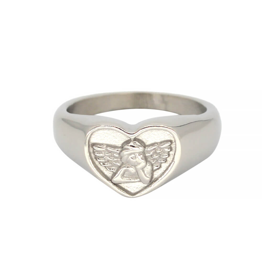 Custom Stainless Steel Women Angel Signet Ring, made in 316 stainless steel with 24 K gold plating; it has US size from 8 to 13.